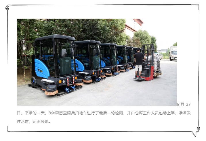 園區、停車場、機場、廣場......在眾多場所的應用以及和友商的對比中,騎兵系列掃地車憑借強悍的清掃能力,平穩度過消費者認知期,得到了終端應用人群的認可和稱贊。容恩“騎兵”的身影,正漸行漸多...