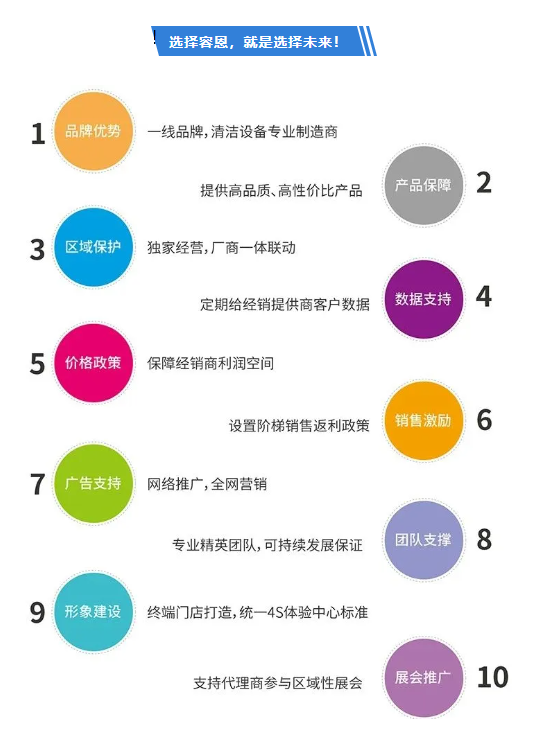 區(qū)域獨(dú)家經(jīng)營,支持合作伙伴打造容恩清潔設(shè)備4s服務(wù)體驗(yàn)中心,統(tǒng)一品牌形象,打造集展示、體驗(yàn)、會(huì)議、培訓(xùn)、售后、辦公等多功能的服務(wù)綜合體,逐步建立全國統(tǒng)一、標(biāo)準(zhǔn)化、專業(yè)化的4s門店。