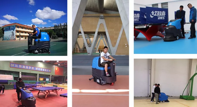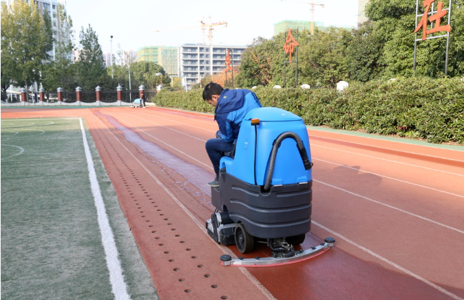 體育場館,例如環形跑道、籃球場、排球場、羽毛球場、乒乓球場、網球場、室外廣場、室內走道等,地面類型有塑膠、聚氨酯、瀝青、地板、水泥、地磚等,在保潔方面有如下現狀: