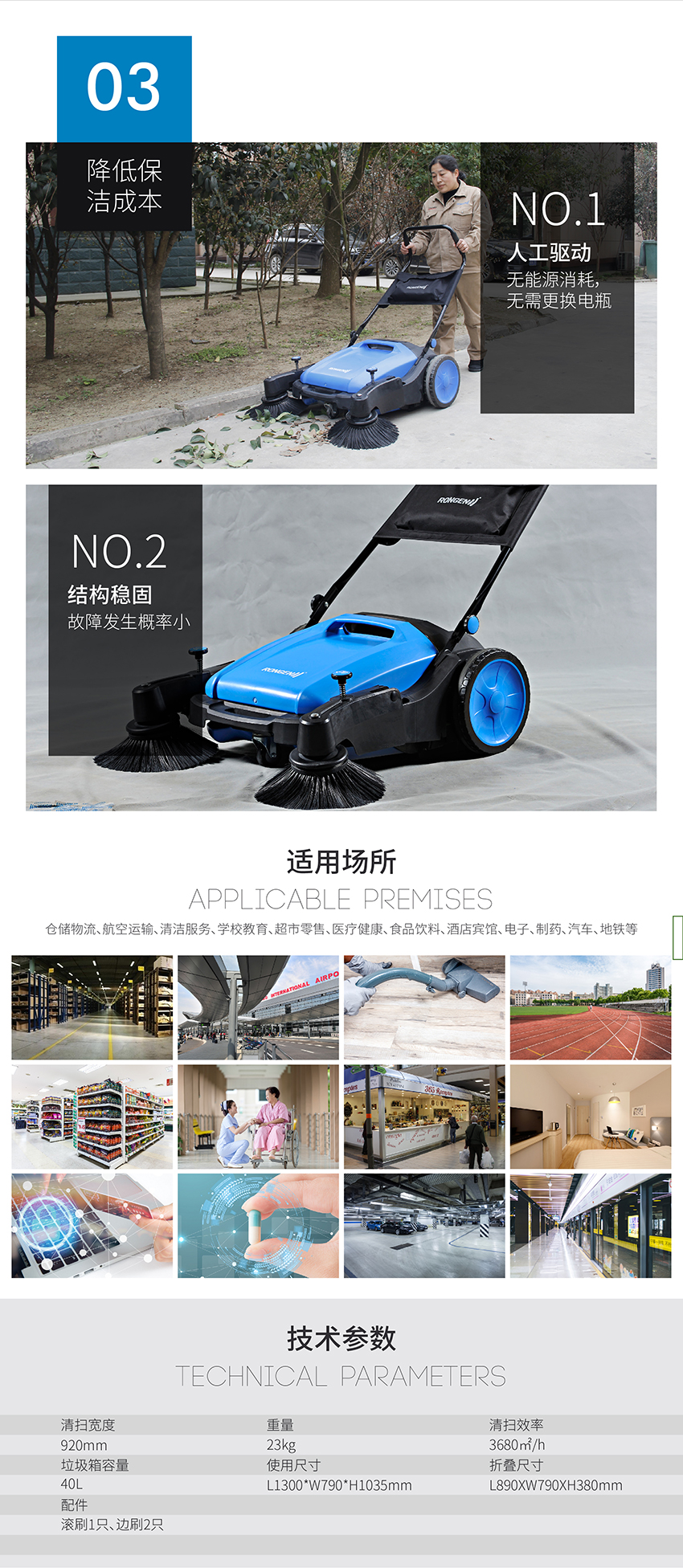 用途:環(huán)保型掃地車體現(xiàn)非凡設計,功效顯著,手推式人工動力掃地車致力于生產(chǎn)世界品質的各類工商業(yè)系列清潔設備。