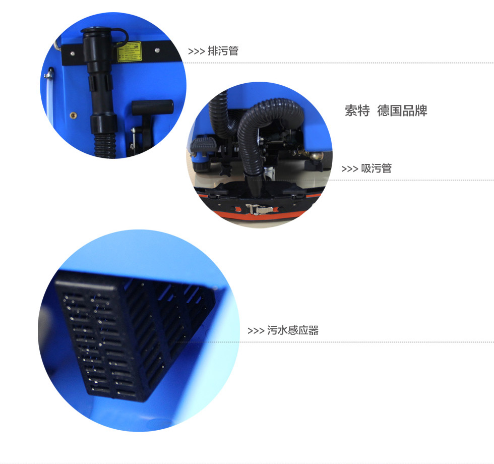洗擦、吸干一次性完成,洗刷吸干過的地面,潔凈如新,臟水、泥土、沙粒、油污統統吸入污水箱;可清潔不同的材質地面,如:環氧樹脂地面,油漆地面,混凝土,瓷磚地面等。