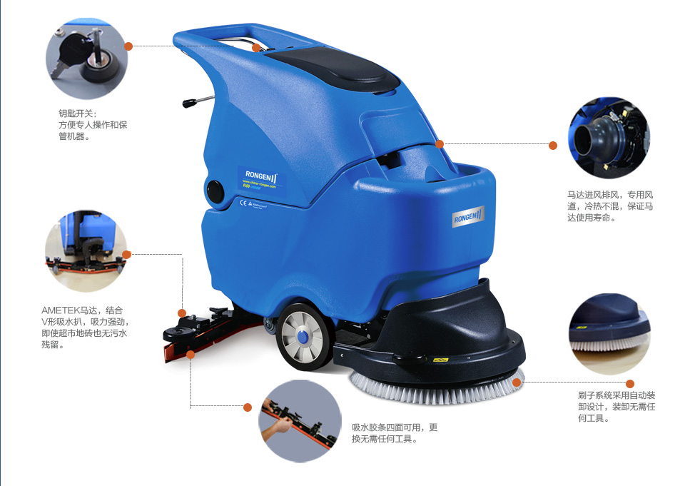 用途:全自動洗地機,洗擦吸干一次性完成,有效減少清潔勞累和作業時間。