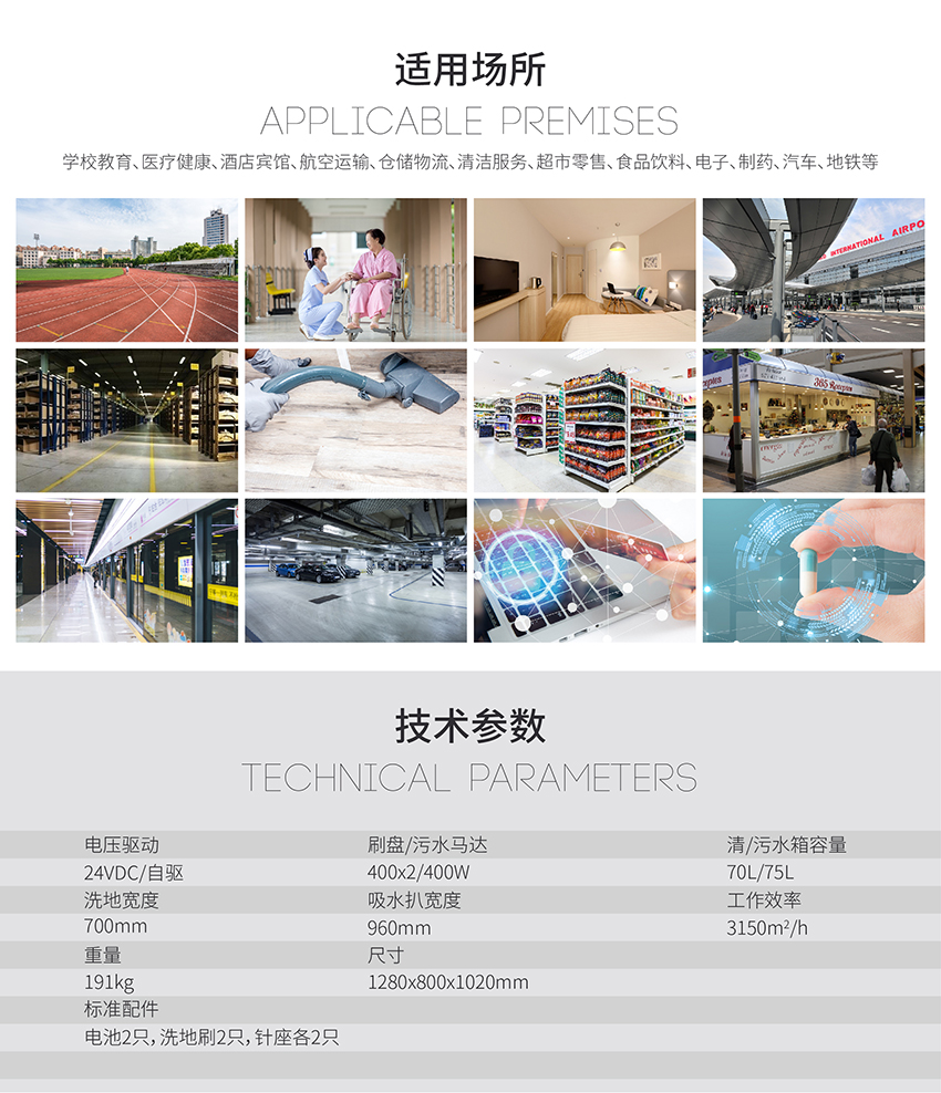 用途:手推式雙刷盤洗地機,性能卓越,操作簡單,提高清潔管理成本。