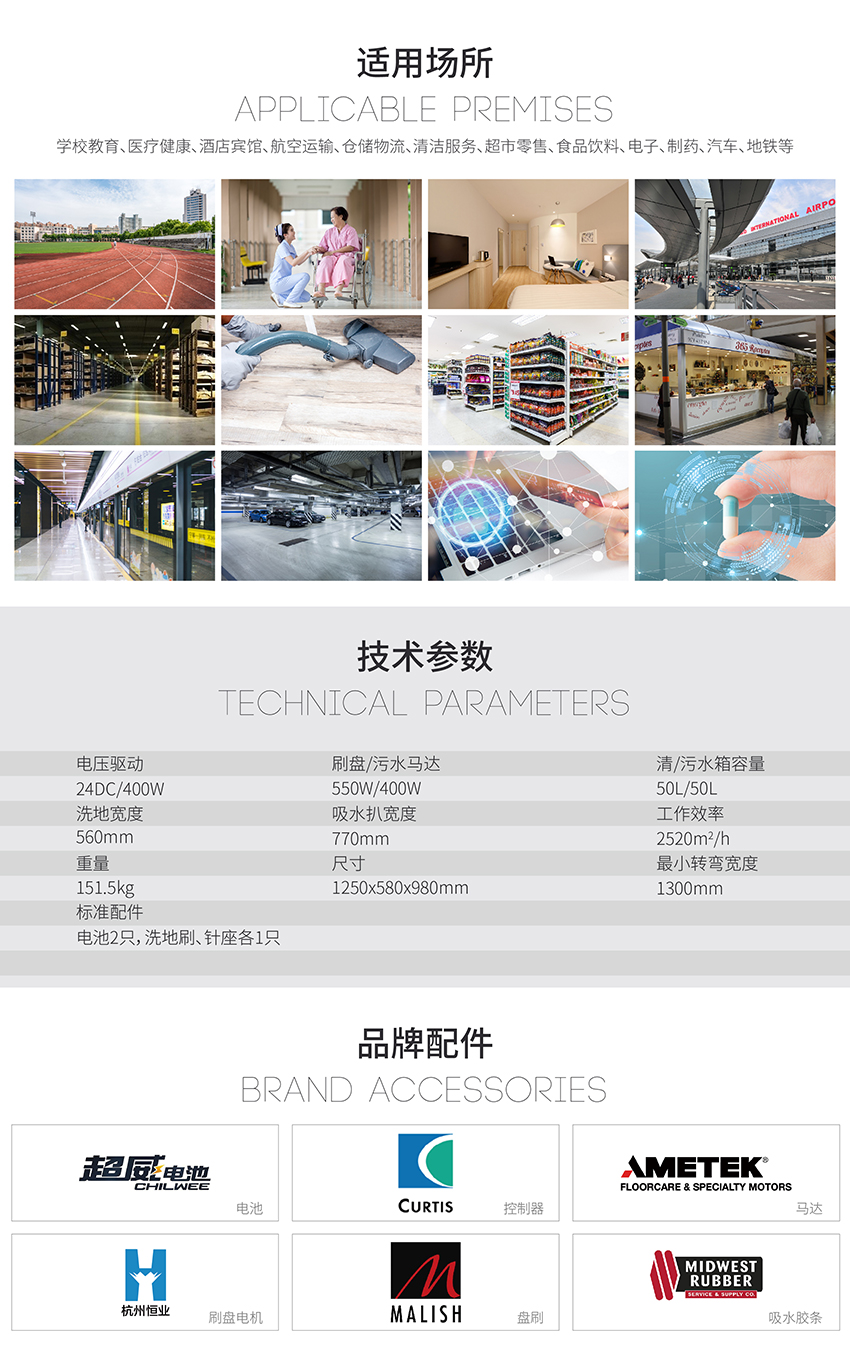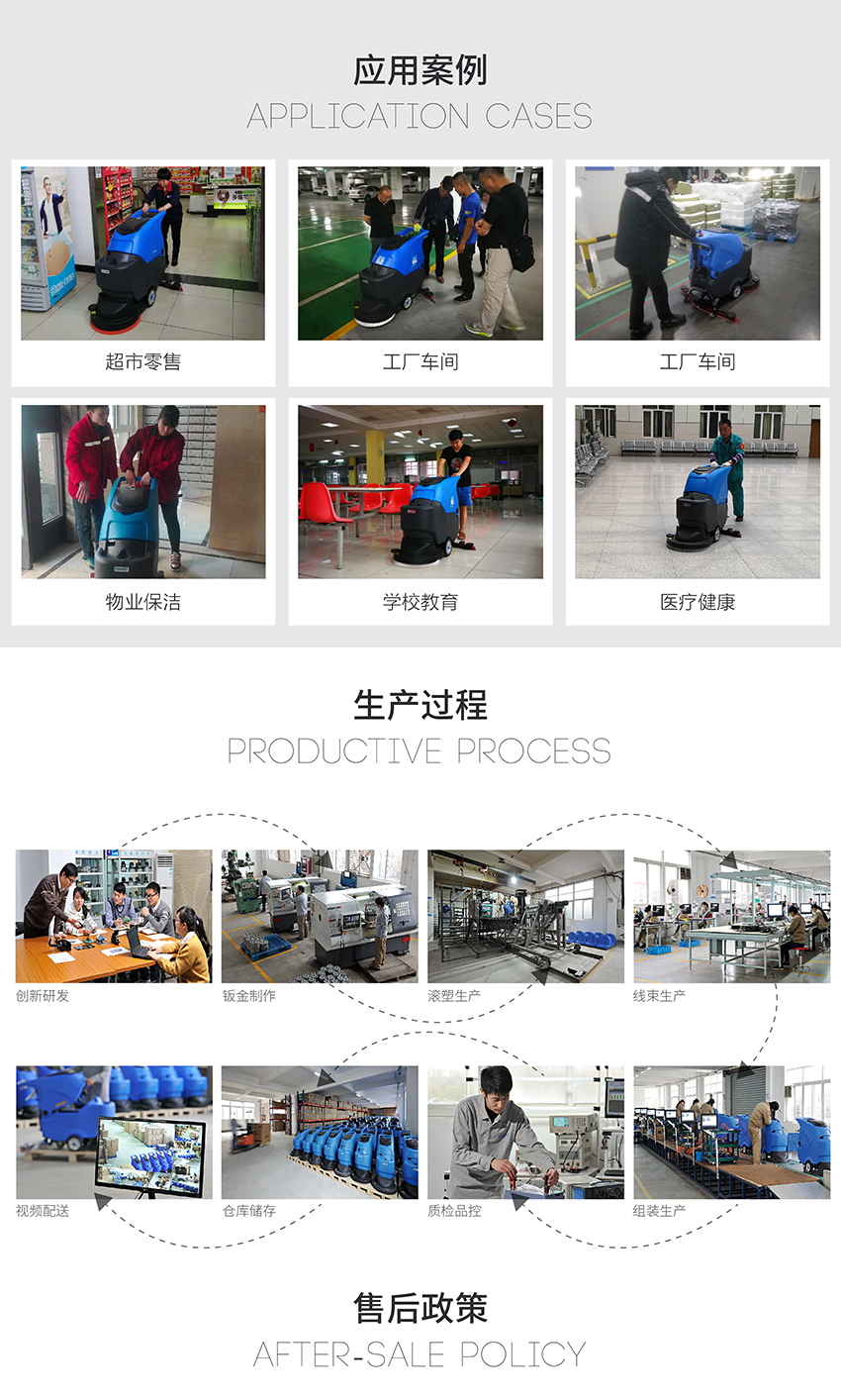 用途:全自動手推式洗地機,簡化清潔工作,顯著提高清潔衛生質量。