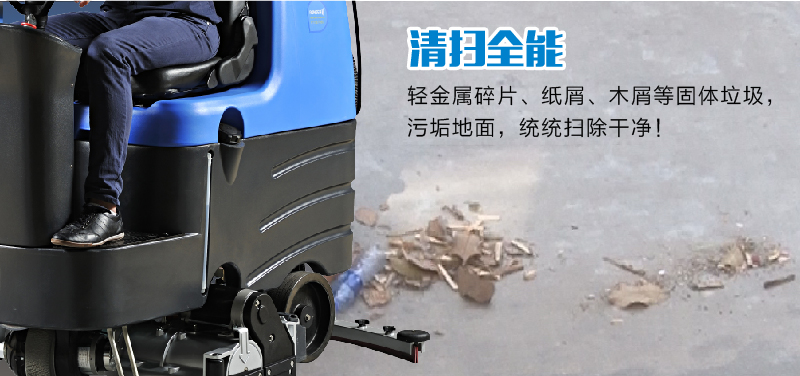 4.3、清掃全能。適合清潔帶有煙頭、輕金屬碎片、紙屑、木屑等固體垃圾碎片的地面。重污垢地面,可以實現加壓清洗。