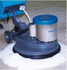 5、用裝有打泡器、地毯刷的單盤掃地機(jī),以干泡刷洗地毯。